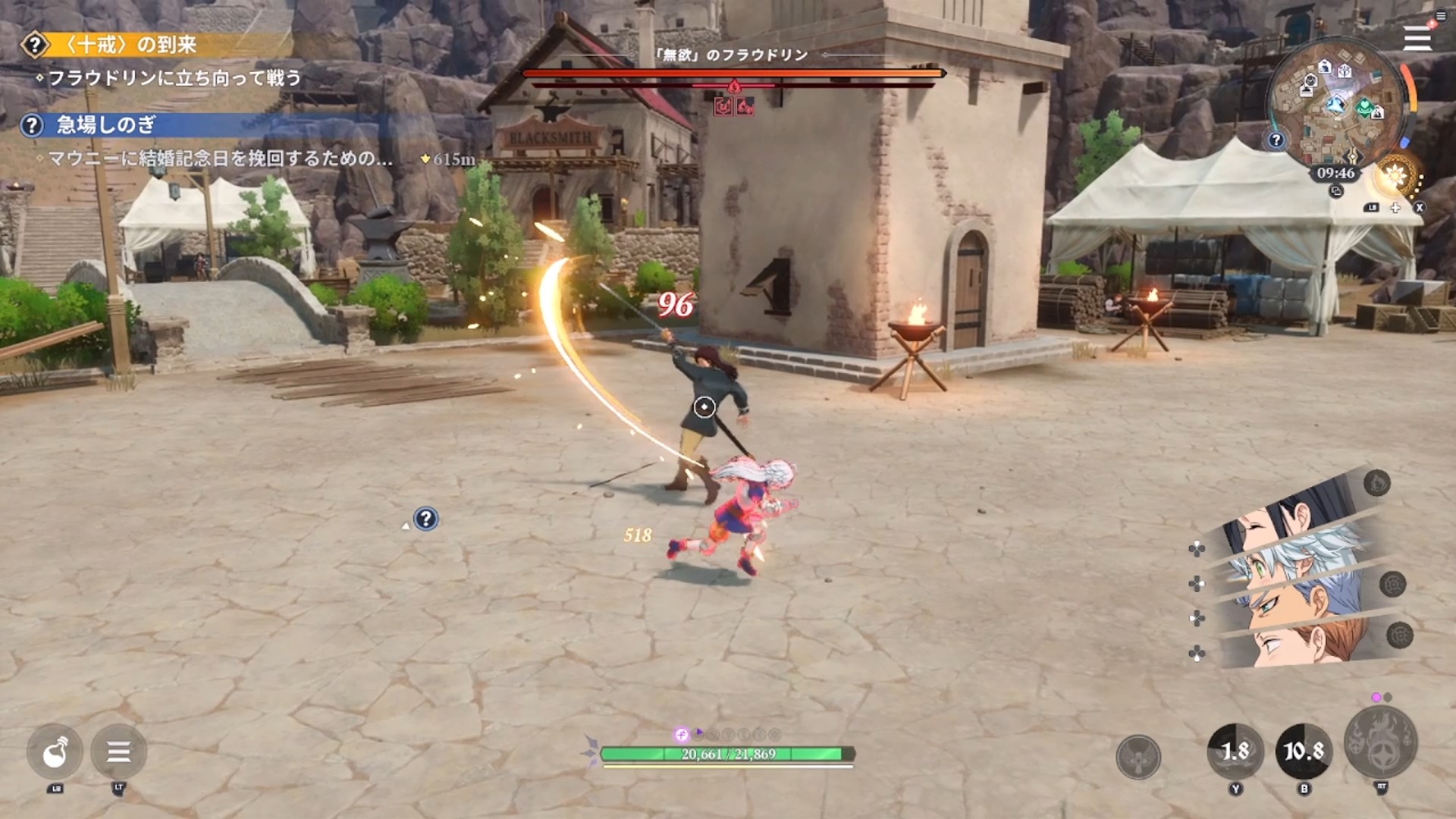 ▲次の攻撃の初動はシンプルな切り上げ攻撃。立ち回りに自信があるならこれもジャスト回避してしまいましょう。