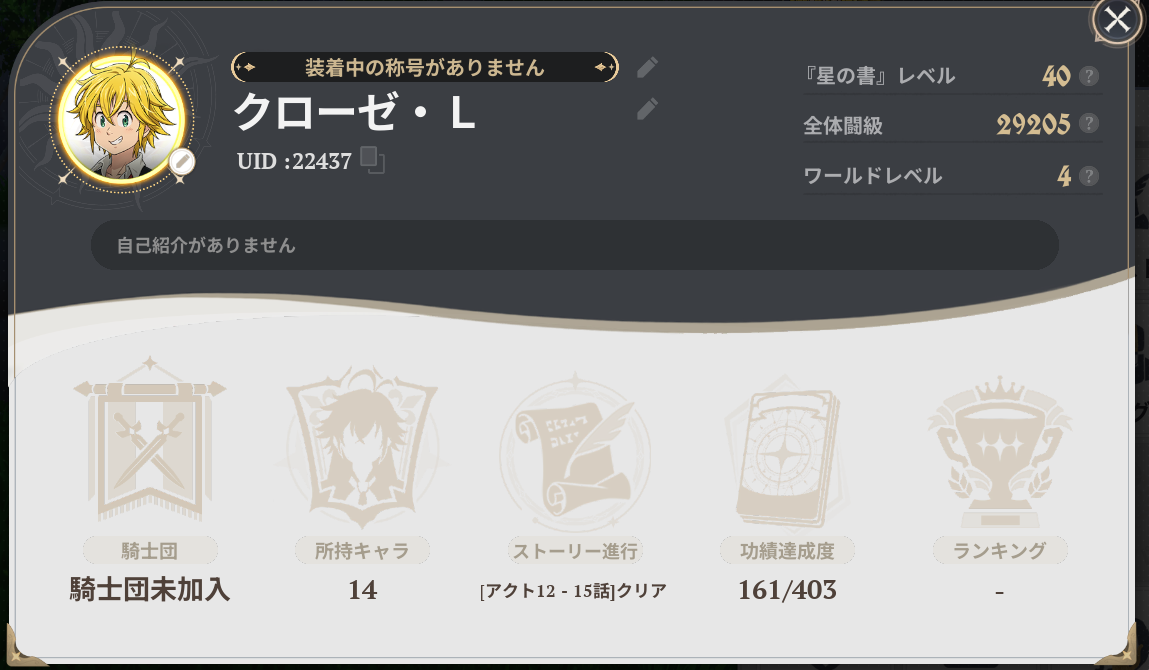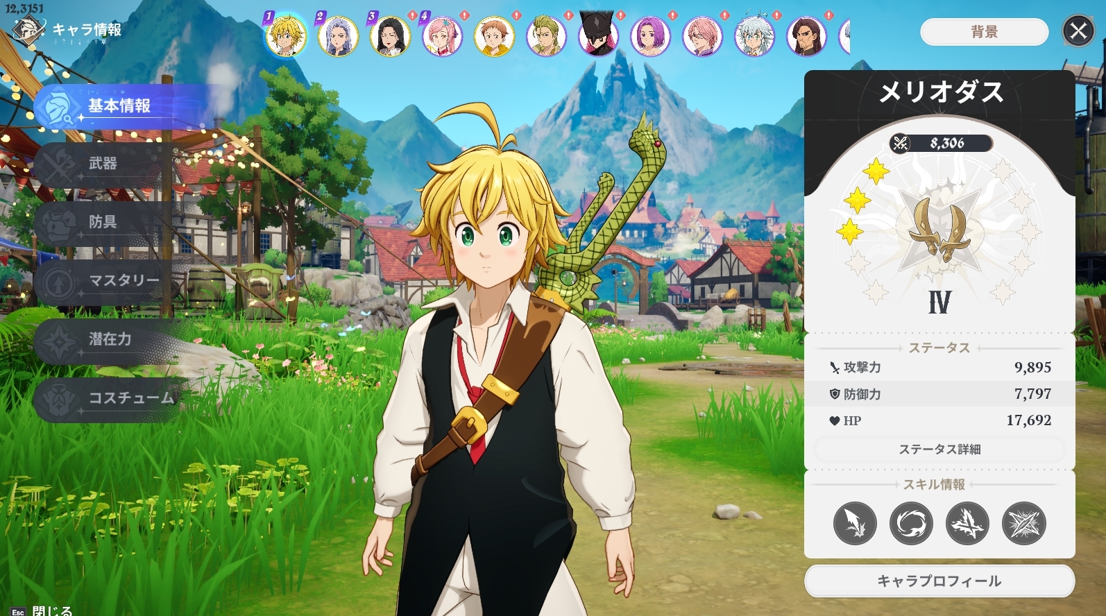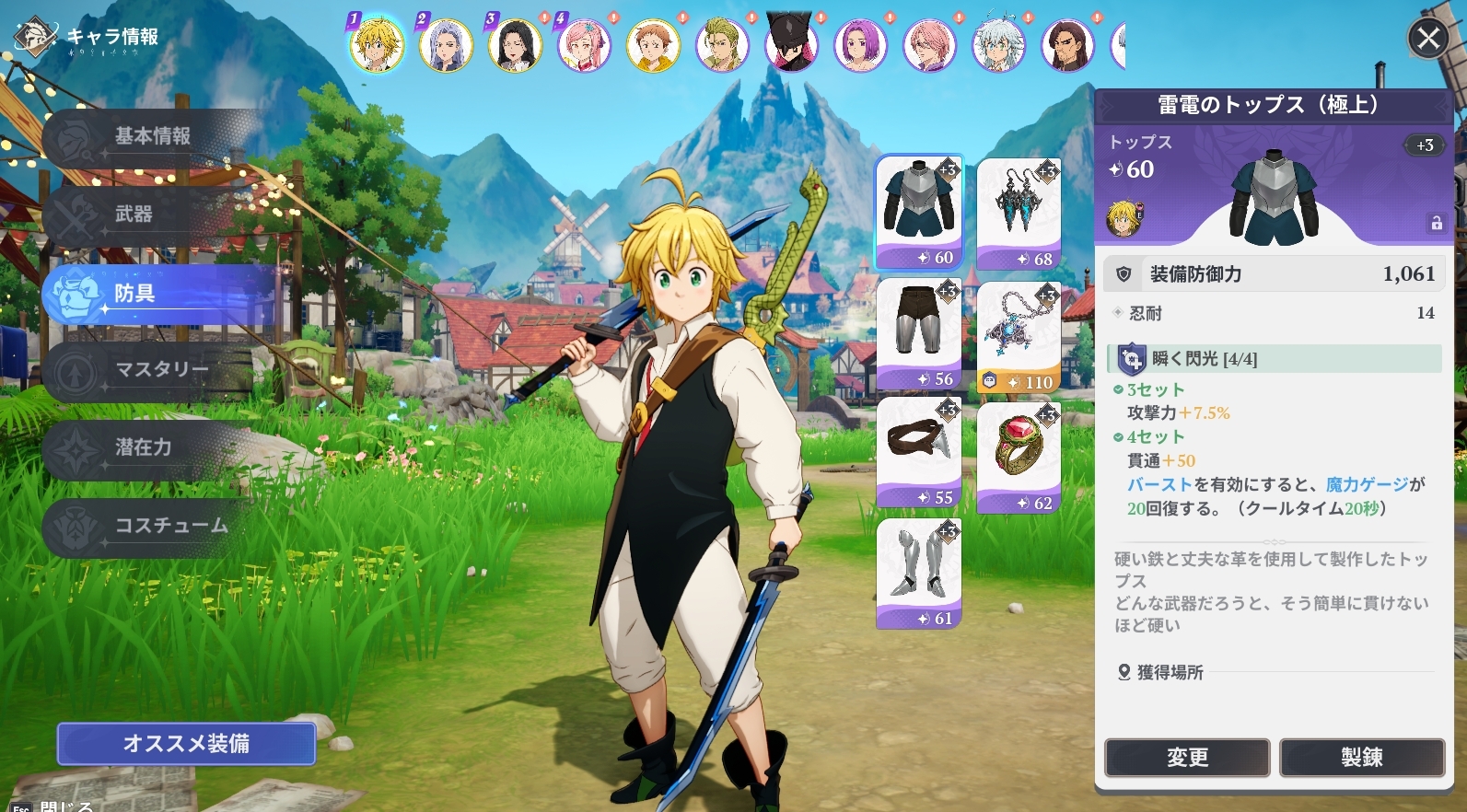 メリオダスの育成状況も載せておきます。防具は雷電4セットです。