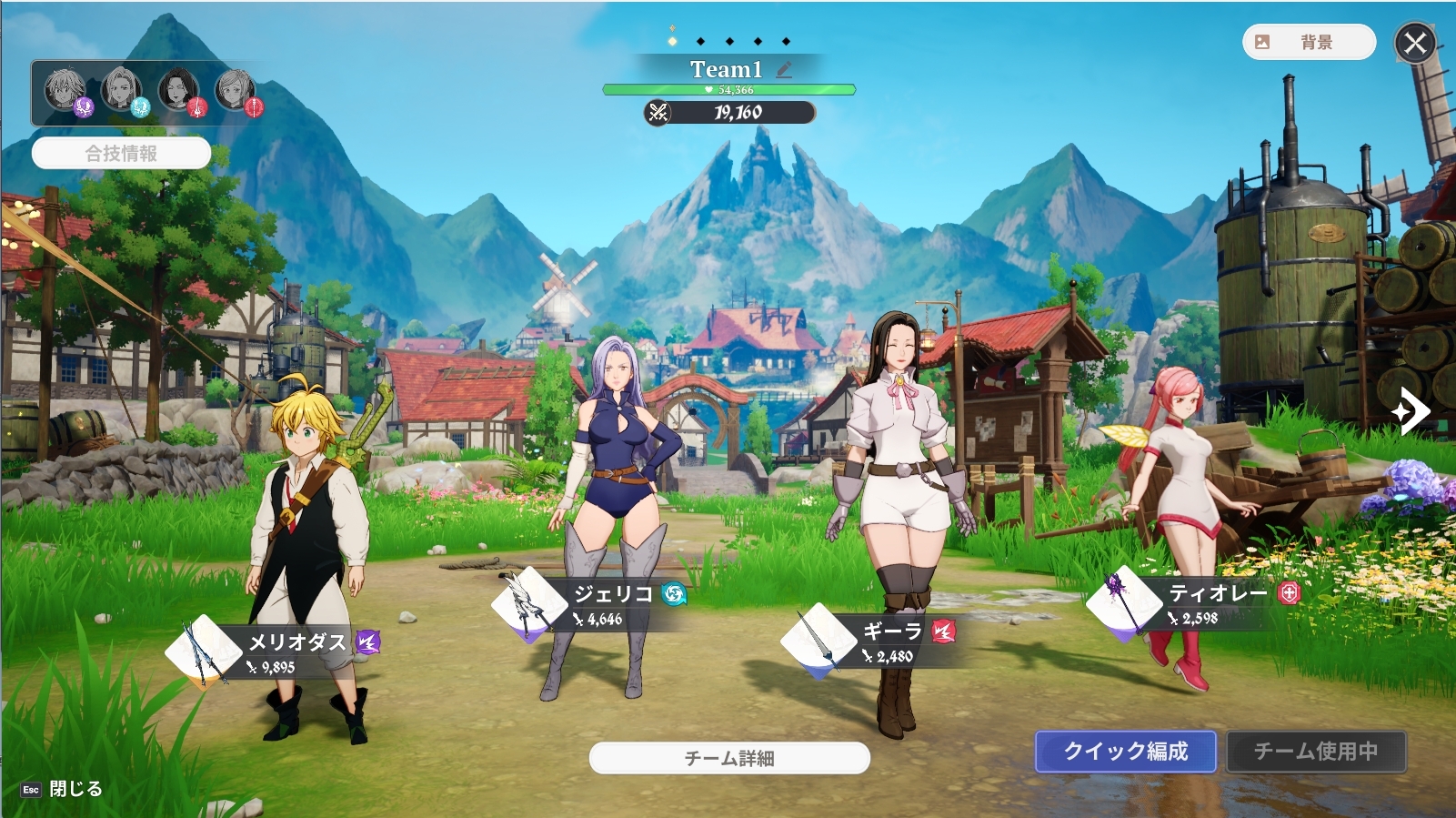 最終的なパーティとしてはティオレーをバグに入れ変えるつもりです(メリオダスと相性の良いデバッファー)。ギーラと入れ替えでも良いのですがティオレーは範囲持続ヒールなので、ギーラで雑にバリアを貼るほうが動きやすい印象。