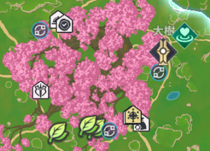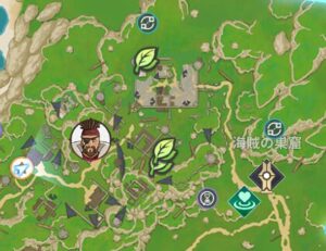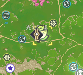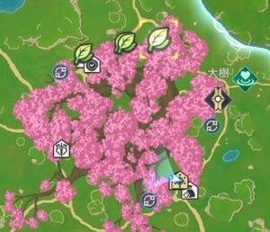 ▲妖精王の森は大樹付近に(葉っぱの位置とプレイヤー現在地)。
