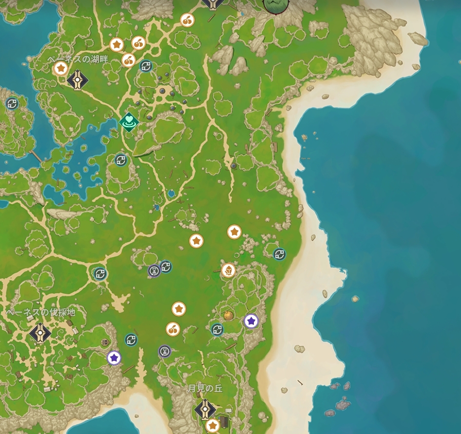 積極的に採取したい、比較的希少性や需要の高いと思われる素材について、地図上にマーカーで示す形でまとめました。