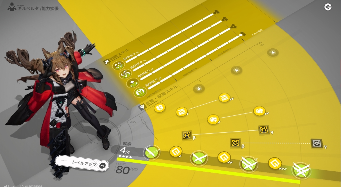 ▲ギルベルタを引くまでリソースを完全に温存して育成感覚がわからなかったので、通常攻撃を含めスキルを無駄に振ってしまいました。必殺技は特化1にしています。