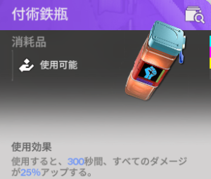 ▲例えばこの辺ですね。達成時に使っていたのはこれだったはず。複数を併用できるか気になって試したりもしましたが、消耗品使用前に確認できる効果発動中のアイコン表示からみると、1つしか効果が出なそう?