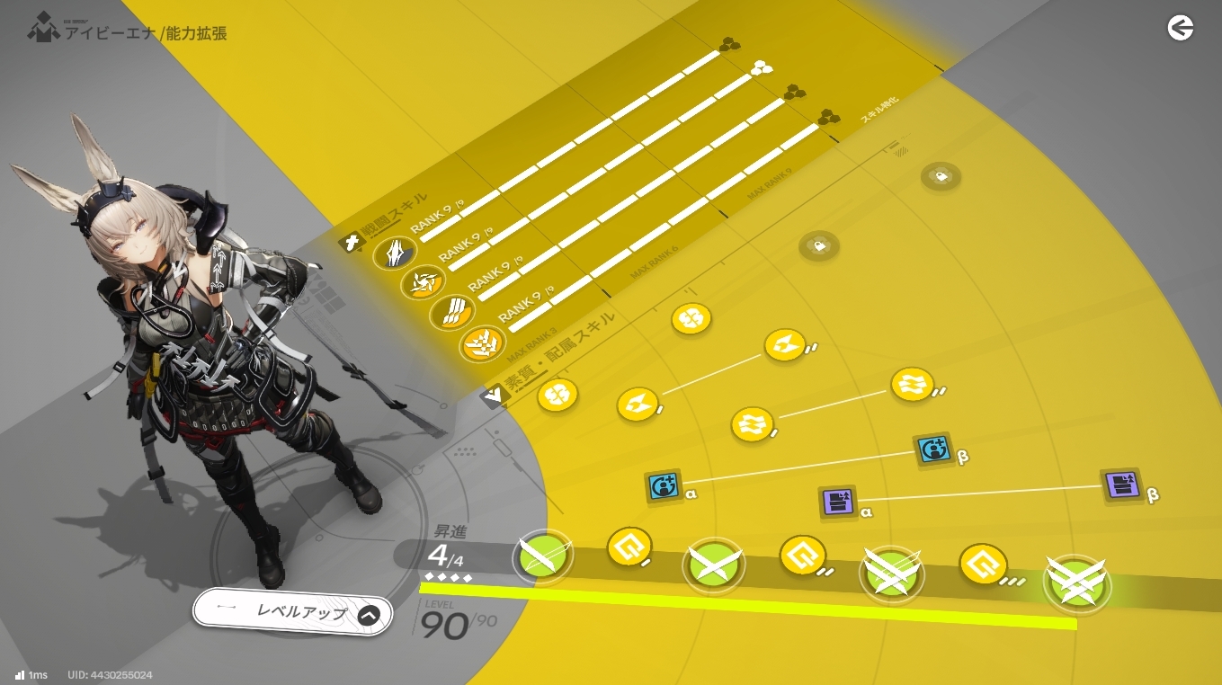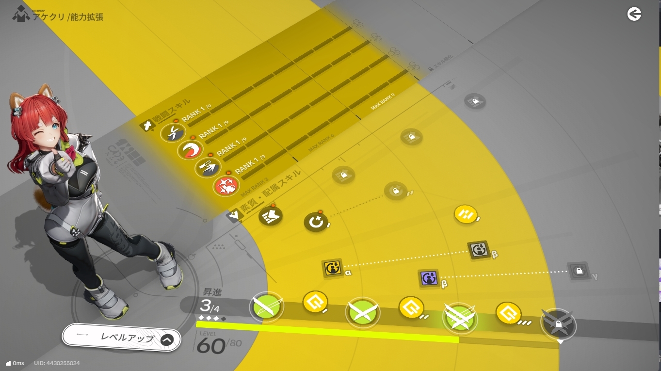 ▲金装備着用と「リンク」バフが得られるパッシブのみ取得という最低限の育成。