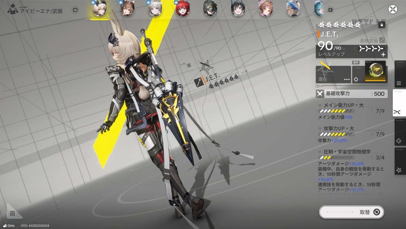 ▲武器も90レベル。配布の箱からもらったJ.E.Tです。並の編成で挑むなら育てられるところは全部育てたい、という感じでした。