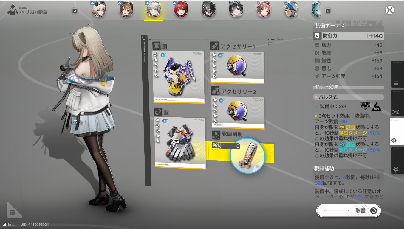 ▲装備はパルス式セットに軽量超域ガントレット。こちらもアーツ強度を上げています。可能なら同OPに精密加工をしたい点も同様。