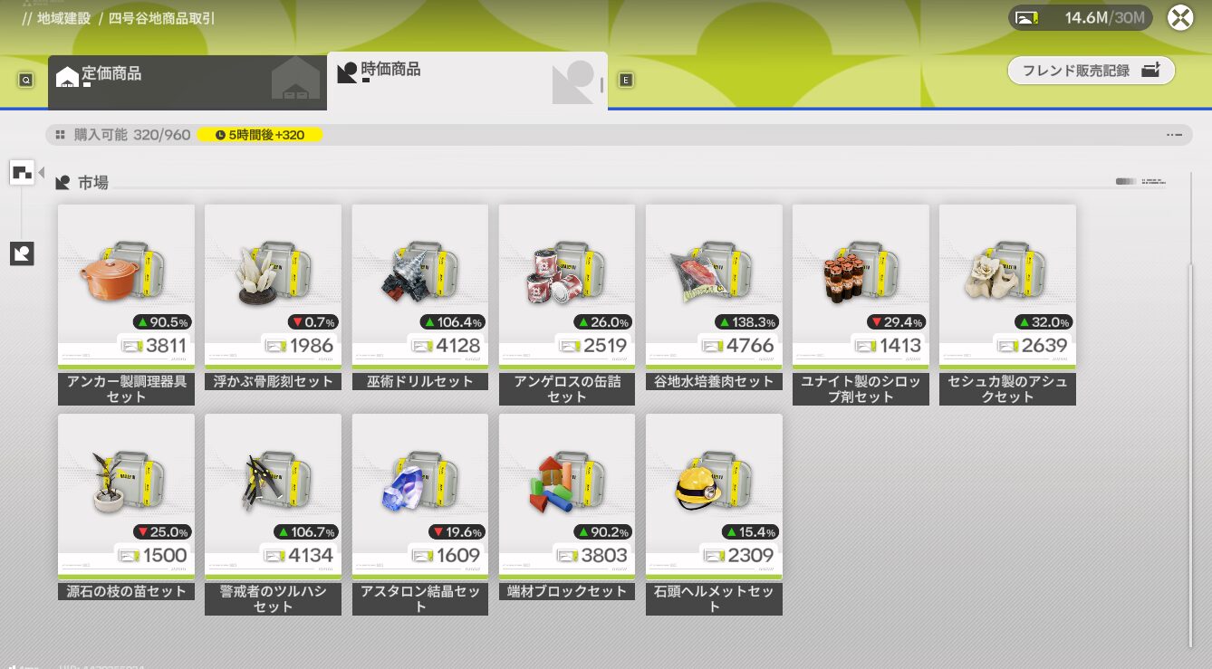 売る時はもちろんフレンドの船が基本。できれば400%以上稼ぎたいって発想になってきました。