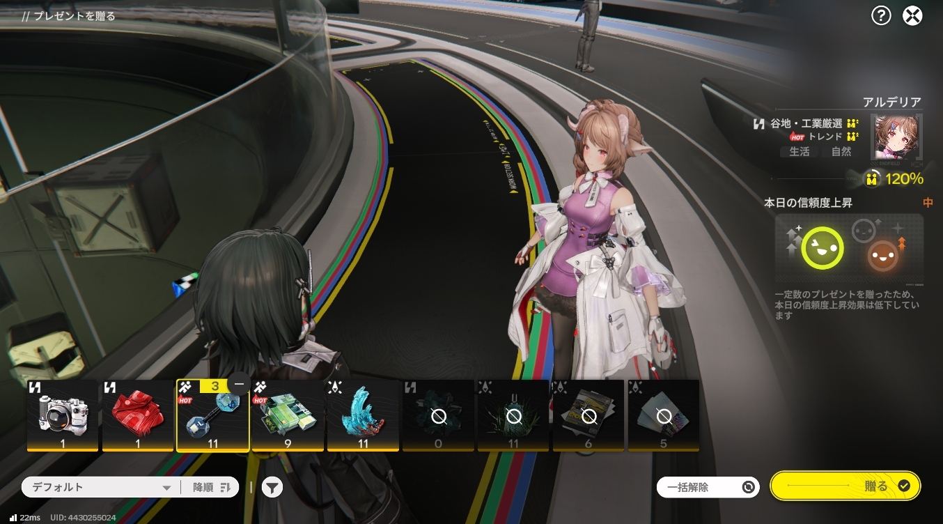 効率が良いのは一人当たり1日3回まで。キャラの好みやトレンドに合ったものを送ると上昇幅が高まる。