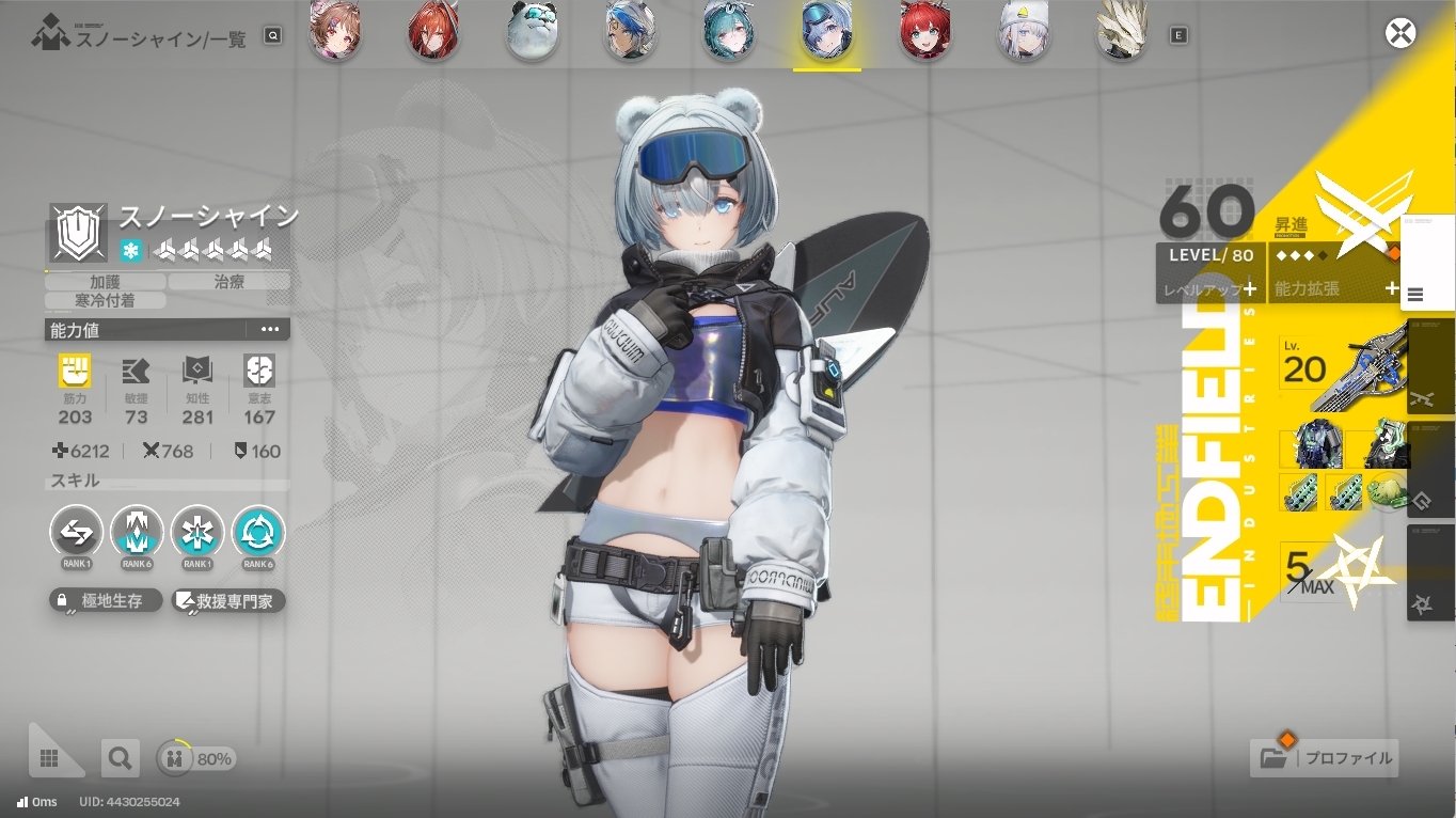 一応育成度合いは下記に記載。端的に言うと金装備装着分だけ育成し、肝心の装備はアルデリアからの流用の流転セット+αという雑さです。