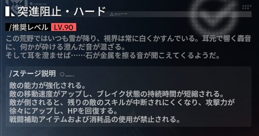 スノーシャインは戦技で味方への被ダメージ割合を微量に抑えつつ(RANK6時点で90%カット)、カウンター攻撃を行うことができます。ステージ2「突進阻止」とステージ3「盤石安定」で起用。正直ステージ1でも使っても良かったかも。