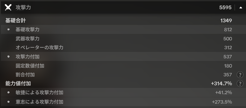 エンドフィールドではキャラクターのメインステータスの2分の1(%)、サブステータスの5分の1(%)が付加的に上昇する設計になっているようです。