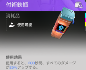 消費アイテムの効果 1.攻撃力倍率は「割合付加」に加算される。 2.攻撃力固定値は「固定数値付加」に加算される。 3.会心率、全てのダメージは元の値に普通に加算される。 4.アイテムの数値表記は小数点以下四捨五入の値と思われる。