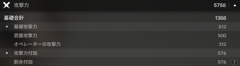 なお、基礎攻撃力と攻撃力付加を合算したものが、攻撃力の「基礎合計」となります。ここに能力値付加がかかってくるわけですね。なお、攻撃力付加には固定数値付加も存在し、こちらは純粋な固定値ですが、基礎攻撃力に対して加算になります。