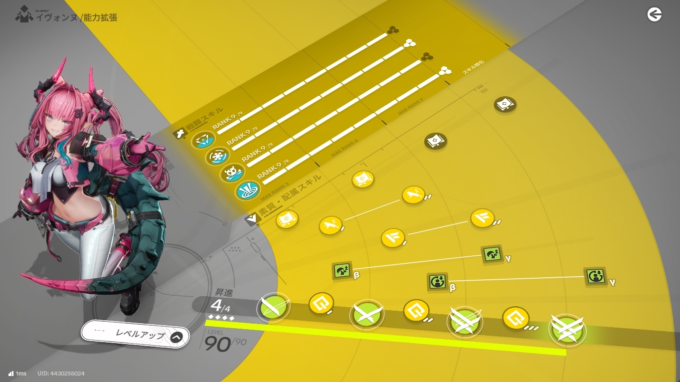 ではなぜこの編成にしたかというと「ペリカはもともと運用できるレベルには仕上がっていたから」という点。まあそもそもペリカはスキル上げなくても仕事できるって点もあります。イヴォンヌ育成をかなり突き詰める必要がある見込みでしたし、必要最低限の投資で進めました。