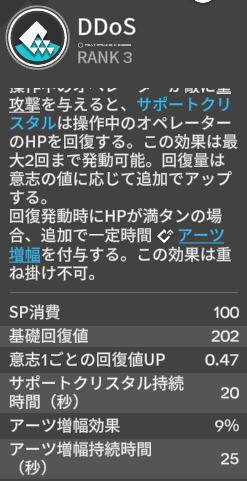 ▲HP満タン時の効果の発動を楽にする意味も含め、回復量の高い騎士精神の方が良い場合もあるかも。