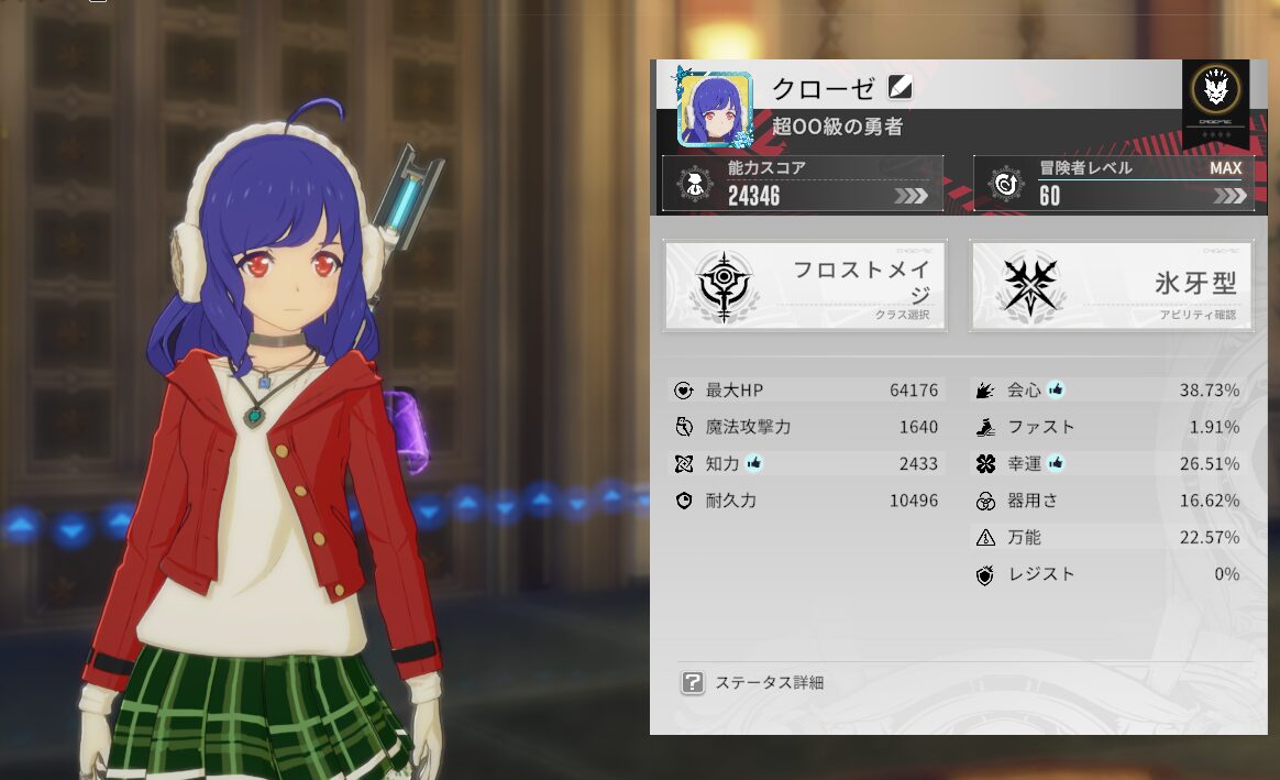 幸運、器用さ、万能のバランスはちょっと難しい所ではあるか。でも概ね現状のバランスでも悪くなさそう。会心40%程度、幸運25~30%程度、万能20~25%程度、器用さ15~20%程度の中でバランスを取ることになるだろうか。