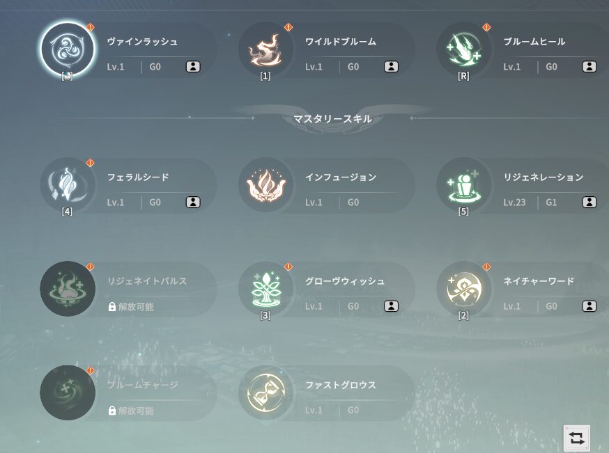 スキルは基本Lv1でG0。なんなら森癒型のテンプレから変えてすらいませんでした。アビリティもシステムのおすすめをポチっとしただけです。