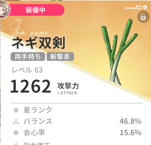 武器攻撃力はもちろん高いほうが良いですが、「バランス」にも要注目。バランスが低いとダメージの下振れが大きくなるのでこちらも考慮して選びましょう。宝箱で開放後に拾えるようになる武器(以下「ユニーク武器)には「バランス」が低いものも多く要注意。