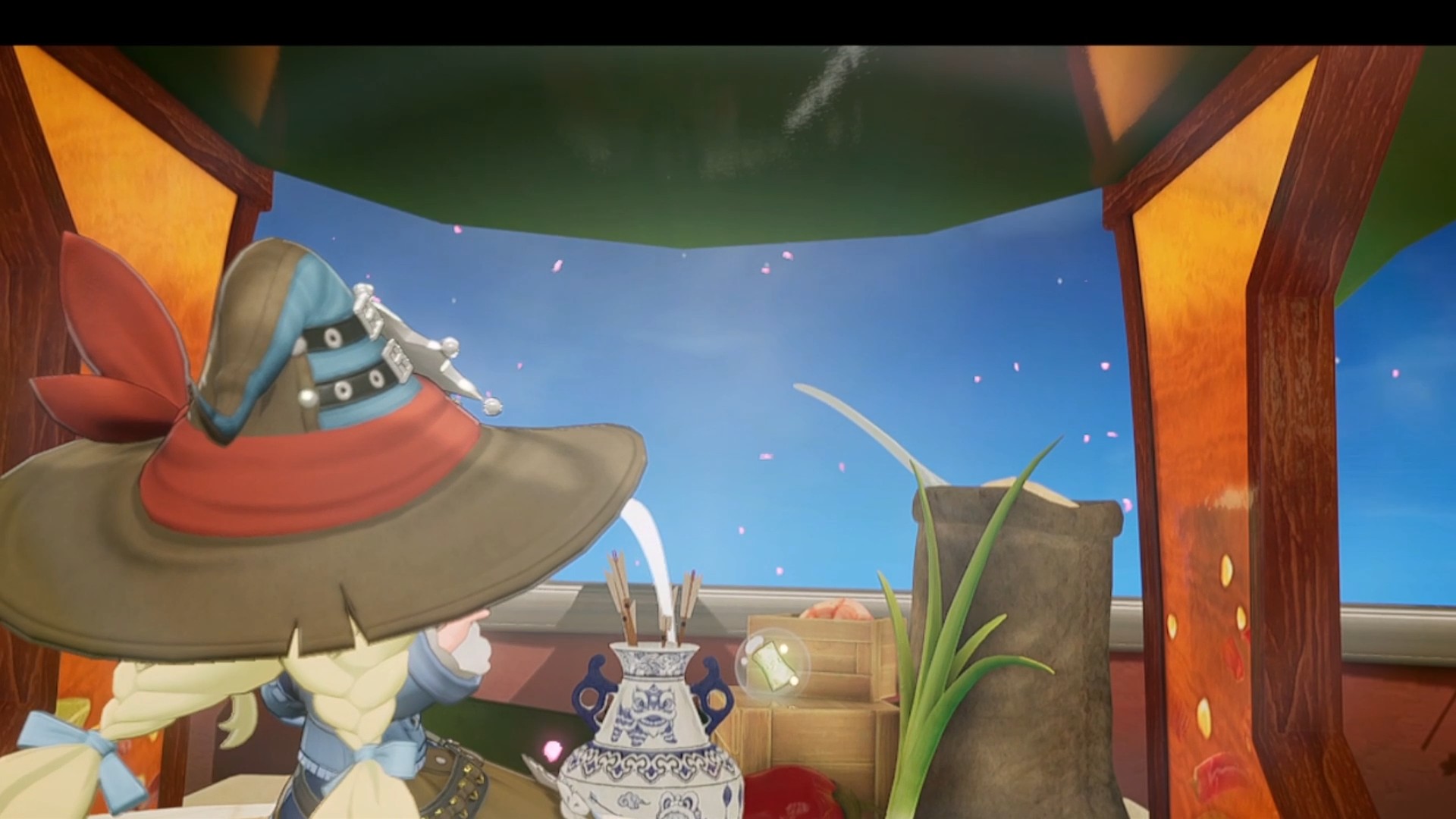 白い矢印で誘導された先では、矢を壺に投げ入れる「投壺」でイベント財貨を追加獲得。得られるのは向かって右側の壺です。ちなみに左側はバフが得られます。