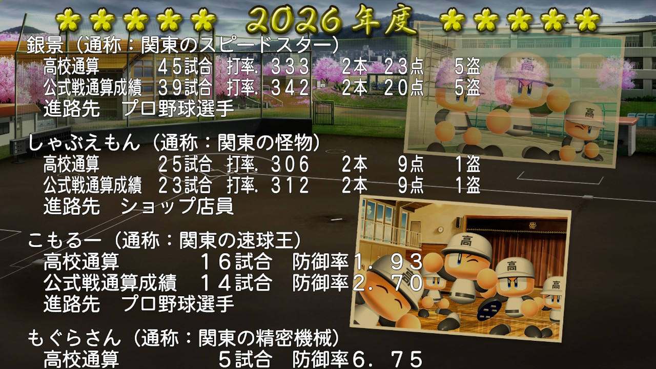 6年目の夏の甲子園初優勝により、当初の目的であった「春・夏の甲子園初優勝」が達成され、1つのエンディングを迎えました。今回は栄冠の4期生のその後を辿っていきます。エース:ボロピッケル、主力バッター:銀景、抑え:こもるーが世界へ羽ばたく。上記...